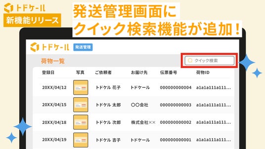 株式会社トドケール(本社:東京都千代田区、代表取締役:野島剛、以下トドケール)は、郵便物・配達物クラウド管理システム「トドケール」において、発送管理画面で利用できるクイック検索機能を新たにリリースしました。