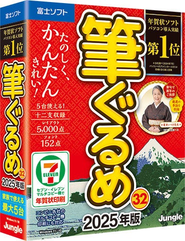 「たのしく・かんたん・きれい」をコンセプトに多彩な機能を搭載した年賀状ソフト。年賀はがきやSNSを使った年始の挨拶には筆ぐるめ 32 2025年版が最適!