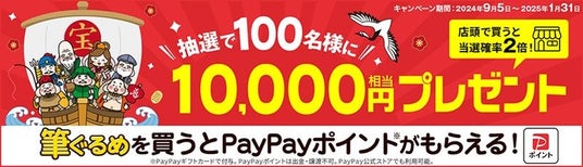 好評のPayPayポイントプレゼントキャンペーンをおこないます。対象製品をご購入していただき、応募サイトよりご応募いただくことで、応募者から100名様に10,000円相当のポイントをプレゼント。応募方法は、筆ぐるめ公式サイトのキャンペーンページをご参照ください。