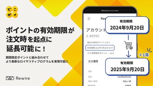 ECシステムの技術支援を行う株式会社リワイア(本社:東京都港区、代表取締役:加藤英也、以下「リワイア」)が提供するポイントアプリ「どこポイ」で、購入によって付与されるポイントの有効期限を最終購入日を基準に延長することが可能になりました。キャンペーンなどで付与される期間限定ポイントと合わせて運用することで、より柔軟なポイント運用が可能になります。