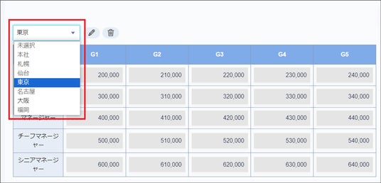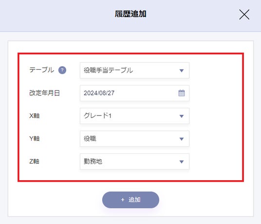 X軸、Y軸、Z軸で設定した人事情報を基にテーブルを作成し、各従業員ごとの給与単価として自動で登録することができます。