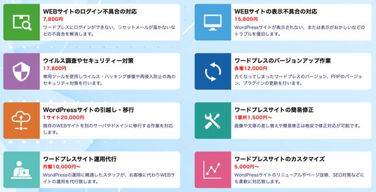 エムクア合同会社(本社:京都府京都市)は、「WordPressの復旧作業」に特化したサービスとして「WPプロサポ」の提供をしております。当サービスは、ワードプレスで制作されたお客様のWEBサイトの表示不具合、ハッキング対応、ログイン不具合対応、移行対応、リカバリー対応などをスピーディに提供致します。