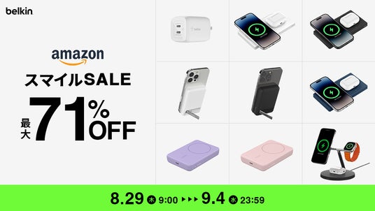 米カリフォルニア発、洗練されたデザインと快適なライフスタイル体験を提案し、グローバルで絶大な人気と市場シェアを誇るスマートフォン・PC関連製品ブランド「Belkin」の日本法人、ベルキン株式会社(以下Belkin、所在地:東京都中央区京橋)は、8月29日(木)~9月4日(水)にて開催されるAmazon スマイルSALEにて、3-in-1 MagSafe充電器など最新製品などを中心に、全298製品を最大71%オフのセール価格にて販売いたします。
