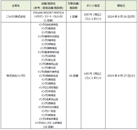 * 記載の店舗/施設数は、発表日現在の店舗/施設数となります。