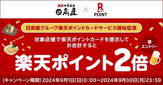 - サービス開始を記念して、「日高屋グループ 楽天ポイントカードサービス開始記念!楽天ポイント2倍キャンペーン!」を実施 -