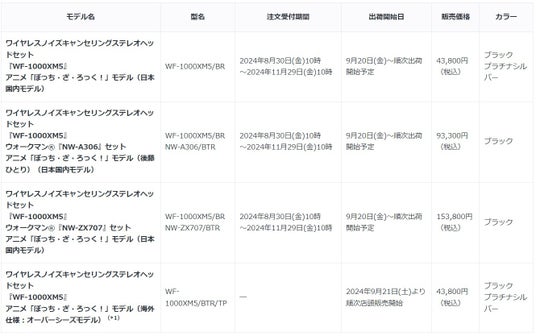 「ソニーストア 銀座・札幌・名古屋・大阪・福岡天神」にて、今回コラボレーションするモデルの実機と購入特典を2024年8月30日(金)から確認できます。