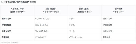 モデルの<ヘッドホン刻印/購入特典の組み合わせ>と同じです。