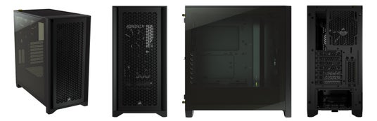 高性能PCを支えるケースは、PCコンポーネントでも人気のCorsair製『4000D Airflow』を採用。フロントに通気性の高いメッシュパネル、サイドパネルに強化ガラスを採用したミドルタワーケースです。システム部と電源ユニットを独立したチャンバーで分けることで互いの排熱による影響を与えない効率的なエアフローを確保しています。
