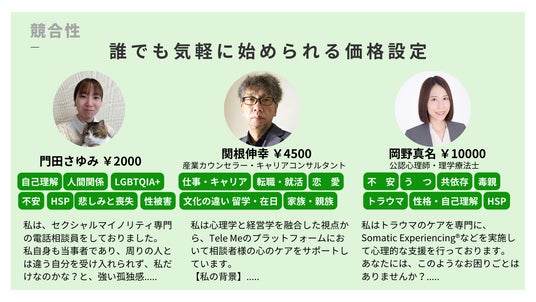 この仕組みにより、TeleMeは従来高額だったカウンセリングを手の届くものにし、メンタルヘルスケアのハードルを大幅に下げています。これにより、企業や個人がメンタルケアを「手軽に始められる入口」として利用しやすくなり、日常生活の一部として定期的なケアを取り入れるきっかけとなります。