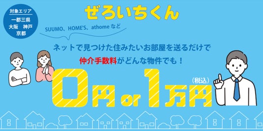 「ぜろいちくん」でお部屋探しをすると仲介手数料が0円か1万円(税込)になり、賃貸の初期費用を抑えることができます。