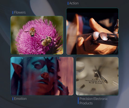 長い焦点距離の圧縮により、背景がぼやけて被写体に焦点が当てられ、昆虫、花、精密電子製品、感情、アクションなどのクローズアップに適しています。