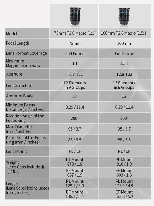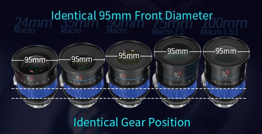SIRUI はこれまで、24mm T2、35mm T2、50mm T2 の 3 つの焦点距離を含むマクロレンズセットを発売してきました。現在、75mm T2.8 (マクロ 1:1) と 100mm (マクロ 1.5:1) の 2 つの新しいレンズが、Jupiter フルフレーム シネマクロレンズシリーズを完成させるように設計されています。長いローカル長を備えた標準の広角レンズは、制作の創造性を豊かにします。ギア位置が同一で、フロント径が 95mm で、同じ特性を持つこの手頃な価格のマクロシネレンズセットは、最初の選択肢となるかもしれません。