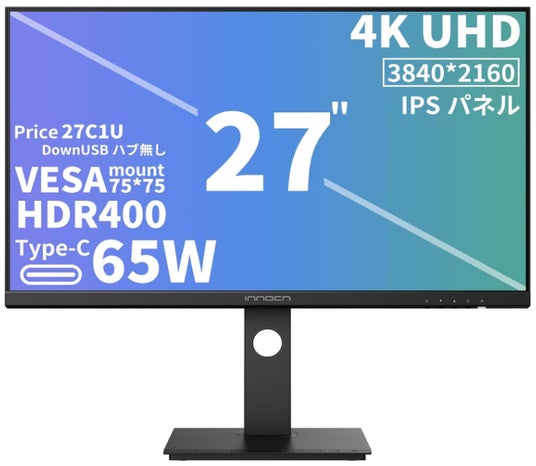 INNOCN 27C1U-D 27インチモニター:HDMI、DP、Type-C 65W などの多彩な接続端子を備えた機能性が高い 4K モニターです。