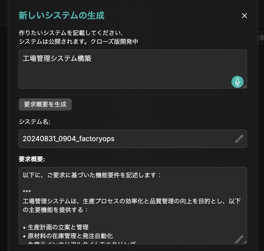 - ビジネス要件や機能仕様を自然言語で記述すると、実行可能なコードが自動生成