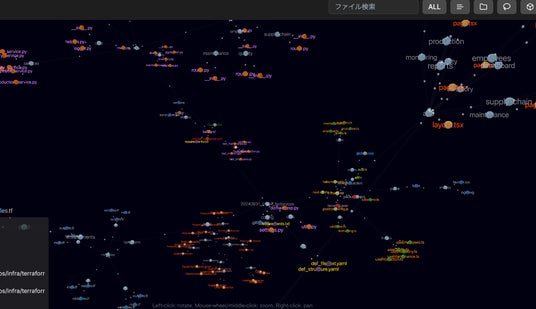 視覚的システムモデリング:複雑なシステム構造を2D、3D空間内のグラフとして表現し、ノードとエッジを使って視覚化