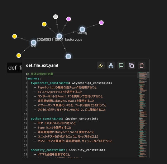 インタラクティブな開発環境:将来的に開発者はVR/ARデバイスを使用して空間内を自由に移動し、システムの各部分を詳細に検証したり、直接操作したりすることを目指します(現在は2次元エディタ)