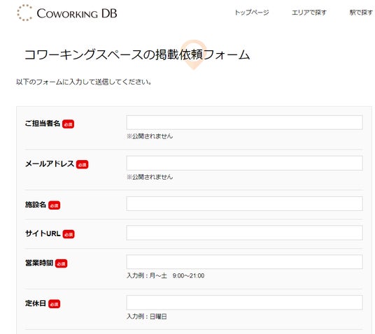 コワーキングスペースの運営者は、無料で掲載依頼が可能です。