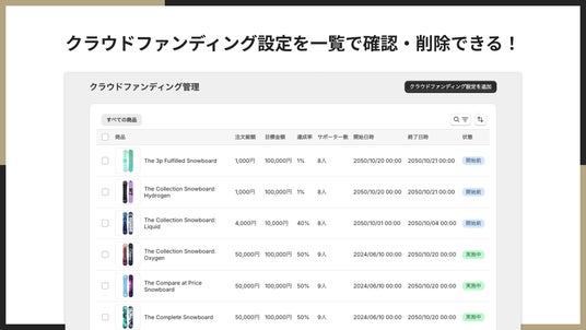 ■クラウドファンディング設定を一覧で確認・削除できる!