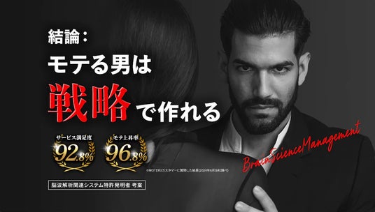 当サービスでは、行動力を強化する一環として、「自分はもっとモテる」とポテンシャルを保有している方に向けて、脳科学メソッドを用いてマネジメントを行い、行動量を増やすよう導きます。その結果として、出会いの量と質をコントロールできるようになり、恋愛はもちろんのこと、ビジネスや社会生活において、フットワーク軽く行動できるようユーザー様を改革していきます。