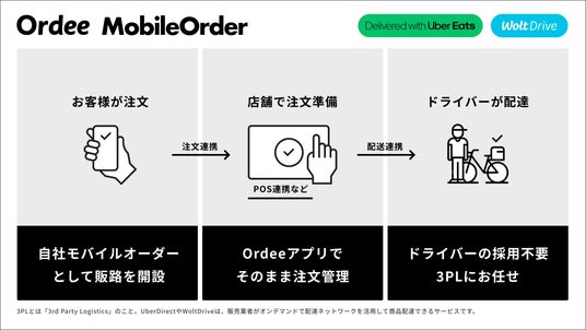 デリバリー一元管理サービス「Ordee」を提供する株式会社Mobile Order Lab(本社:東京都港区、代表取締役:肥田陽生)は、飲食店が自社のテイクアウト・デリバリー注文サイトを簡単に公開できる新サービス「Ordeeモバイルオーダー」をリリースしました。本サービスは、LINE上で注文を受け付けることで顧客の利便性を高め、配達には3PL(3rd Party Logistics)として Uber Direct やWolt Drive等を活用することで、自社で配達員を抱える必要がなく、デリバリーメディア経由の注文と比較して手数料を削減できるのが特徴です。