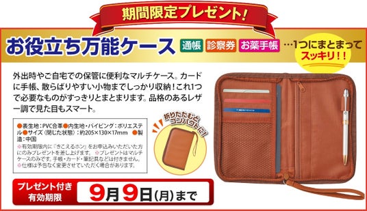 9月9日(月)までのキャンペーン期間中に本商品をご購入いただくと、期間限定プレゼント「お役立ち万能ケース」を贈呈いたします。