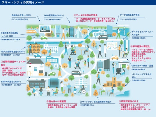 図 スマートシティの実現イメージ(「内閣府 - スマートシティとは」)