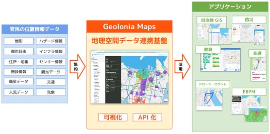Geoloniaは国、自治体のデータを中心に都市・まちの情報を集約し、地理空間情報を従来よりも簡単に活用できるスマートシティの基盤を構築・提供してきました。