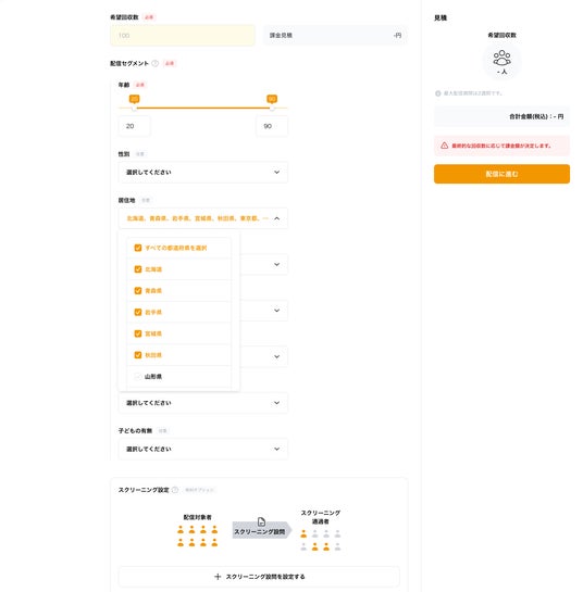 本調査とスクリーニング調査は一体型のため、たった一度の配信で調査は完了します。