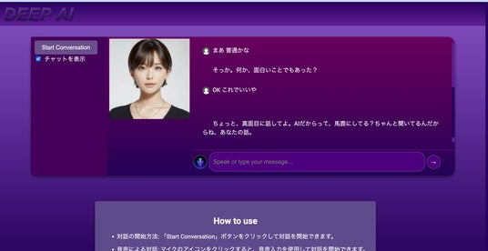 利用者が話す内容をAIが聞き取り、実際に会話として成り立つ返しをする。