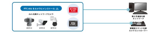 PTC-A01 / PTC-A01VをAxis製ネットワークカメラにインストールすることで、国土交通省仕様準拠のH.264TS、TTSの映像が出力可能になるソフトウェアです。
