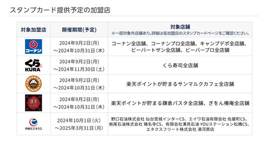 (注3)「楽天ポイントカード」加盟店においては、「楽天ポイントカード」の提示および条件を満たした決済で自動的にスタンプが付与されます。