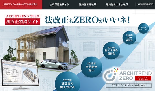 ARCHITREND ZERO Ver.11リリースに合わせて弊社公式ホームページに【法改正もARCHITREND ZEROがいいネ!】と題して、2025年度法改正情報やARCHITREND ZEROの便利機能、各種セミナー情報、お役立ちコンテンツなどを掲載したポータルサイトを開設、法改正対応に取り組まれるお客様に有益な情報を提供してまいります。