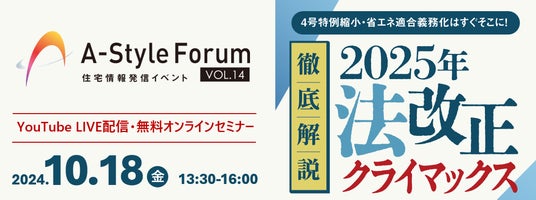 住宅情報発信イベントのご案内ARCHITREND ZERO Ver.11リリースを記念して、2024年10月18日(金)に「A‐Styleフォーラム」を開催予定です。