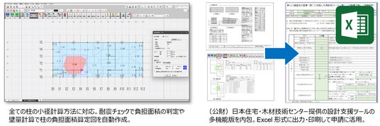 - (公財)日本住宅・木材技術センター提供の設計支援ツールを内包して新基準による耐震設計に対応。