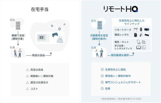 「リモートHQ」は、リモートワークを導入する企業が、社員一人ひとりにとって最適なリモートワーク環境を整備できる、これまでにないサービスです。