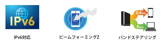 集中して電波を送信する「ビームフォーミングZ」により、iPhoneやAndroidなどの対応する端末では、離れた場所でも快適に接続することが可能です。