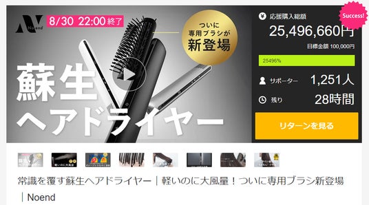Makuakeの先行販売にて4,400万円を達成