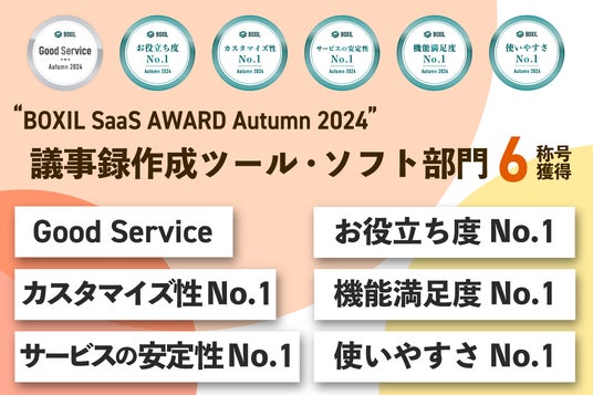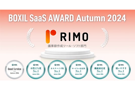 Rimo、「BOXIL SaaS AWARD Autumn 2024」議事録作成ツール・ソフト部門で「Good Service」ほか5つのNo.1に選出
