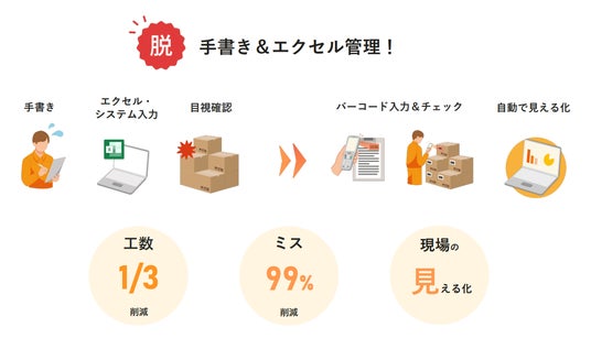 - 製造現場の手書き作業やエクセル管理を、バーコード活用でシステム化