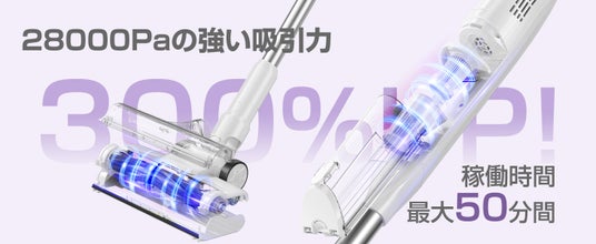 EB102には高品質なブラシレスモーターが搭載されており、最大28000Paの強力吸引力を提供します。静音設計で、ペットにも優しい動作音を実現しました。吸引力は2段階調整が可能で、どんな場所でも快適に使用できます。