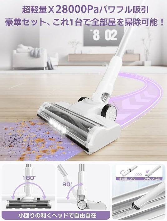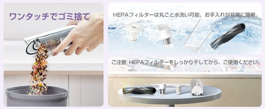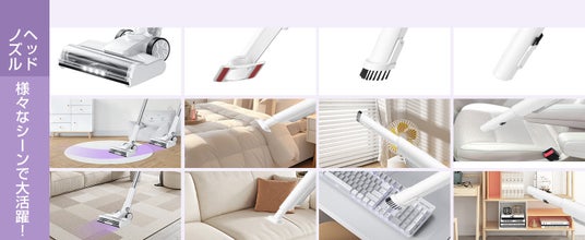 EB102は、スティッククリーナーとハンディクリーナーの2WAYで使用でき、様々な掃除シーンに対応します。付属のノズルを使えば、家の隅々から車内まで、どんな場所も簡単に清掃可能です。さらに、今なら専用ホースセットが無料で手に入るキャンペーンも実施中です。