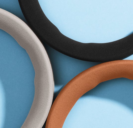 Beoplay H100の側面はシルクのように滑らかで、表面はアルミ素材と傷がつきにくい硬化ガラス製のタッチインターフェースを採用しています。精密なハプティック・ダイヤルとボタンにより、すべての重要な操作に簡単にアクセスできます。新しい取り外し可能なインナーヘッドバンドは、ニット・テキスタイルできめ細かく包まれ、人間工学に基づいて設計されており、一日中通気性と快適さを提供します。Beoplay H100は、タイムレスな3つのカラーバリエーションInfinite Black、Hourglass Sand、Sunset Apricotをご用意。Infinite BlackはBang & Olufsenのクラシックなデザイン美学を反映した色合いで、深みのあるブラックレザーとナチュラルトーンのアルミニウムのコントラストが特徴。Hourglass Sandはスカンジナビア風のトーン・オン・トーンのアプローチで、Sunset Apricotは明るいブロンズ色のアルミニウムがレザーの温かみのあるピーチトーンに映えます。