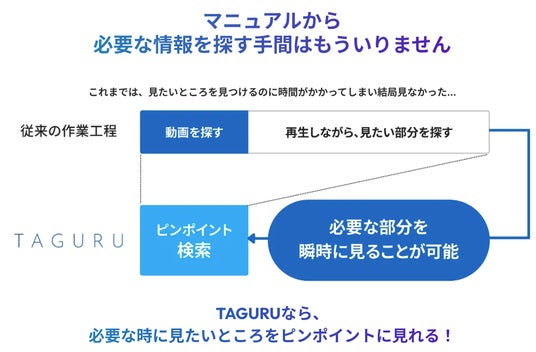 パワポのように作れて、自動で多言語化できる動画マニュアル!シーン再生技術のRUN.EDGEが、誰でも簡単に作れて、しかも現場でちゃんと活用される動画マニュアルソリューション「TAGURU」をリリース