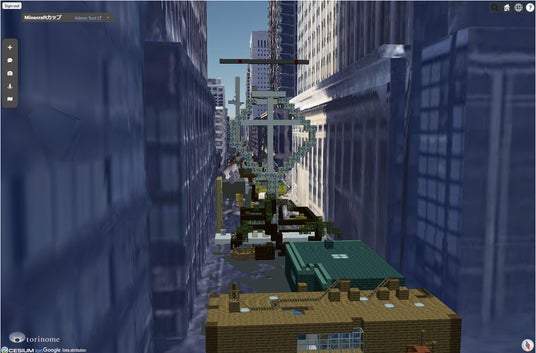 torinome Web上の丸の内に、子どもたちがマインクラフトで作った未来の丸の内を設置した様子