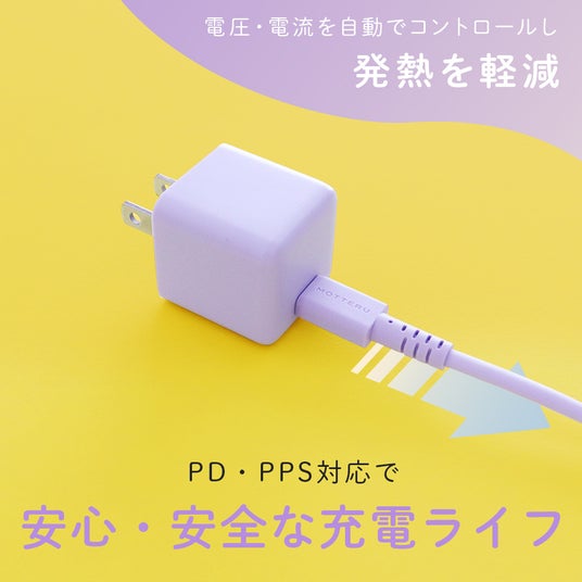 電圧・電流を自動でコントールしてくれるPD-PPSに対応しており、発熱を軽減し安心・安全にお使いいただけます。