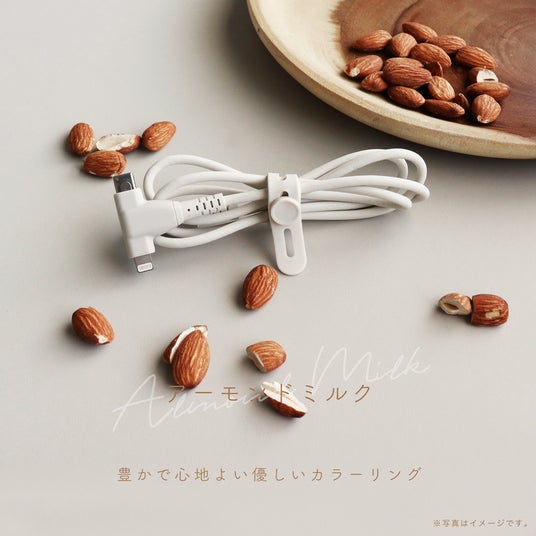MOTTERUの大人気シリコンケーブル同様、赤ちゃんの肌のようになめらかで、ずっと触っていたくなるような手触りとUSB-CケーブルとLightningケーブルが一体化した1本2役の2in1ケーブルに優しいカラーのアーモンドミルクが登場しました。