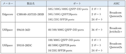 本ソリューションにおいて組み合わされるホワイトボックス装置、光トランシーバーの代表的な各社製品を下記に示します。