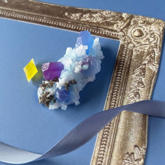 1ヶ月間しか作らない琥珀糖こうぶつヲカシの人気の誕生石シリーズに、9月の誕生石サファイアが登場。天然由来の食用色素を用いた多彩な色彩と、小刀でひとつひとつ切り出す宝石のような形が魅力の寒天菓子。