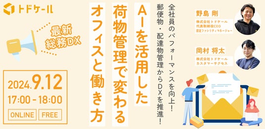 株式会社トドケール(本社:東京都千代田区、代表取締役:野島剛、以下トドケール)は、オンライン無料セミナー「【総務DX最新事例】AI活用で進む荷物管理の自動化とABW」を2024年9月12日(木)に開催します。本イベントはどなたでも参加が可能です。