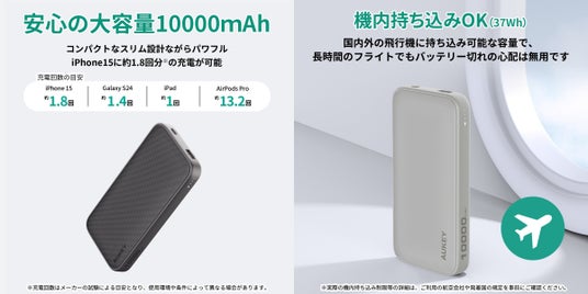充電関連商品のグローバルトップブランドAukey Technology Co., Ltd.(以下「AUKEY」)は、2024年9月6日(金)より、薄型軽量デザインでスマホなどと一緒に持ち運びしやすく、また価格もリーズナブルな、大容量10000mAhモバイルバッテリー「Spark Go 10K」を国内の大手家電量販店および主要ECサイトを通じて販売開始いたします。